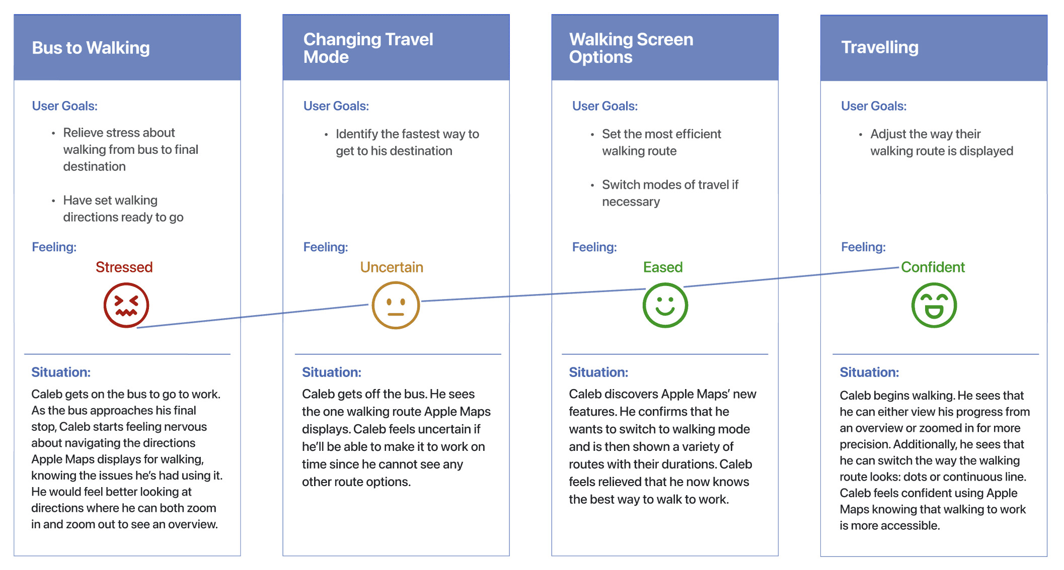This new Journey follows Caleb's (Persona A) emotions while using Apple Maps with the new design solutions.