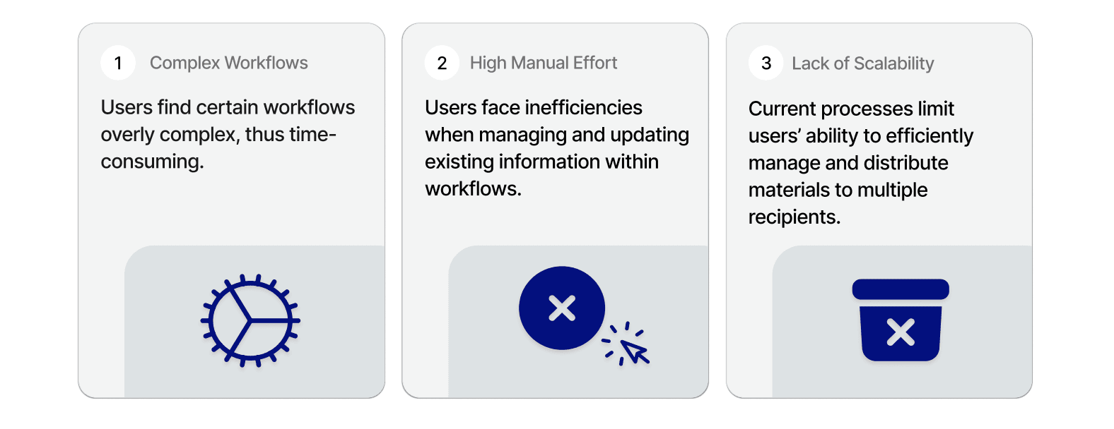 To address users' inefficiencies, I crafted 'How Might We' questions for each pain point, enabling designers and PMs to ideate effective solutions.